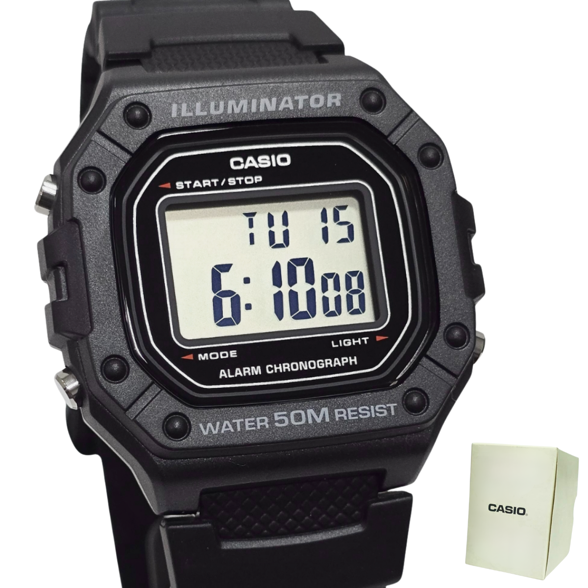 Tenha o icônico mostrador quadrado combinado com pulseira de resina. Este design esportivo apresenta um destaque colorido para levar seu estilo de elegante a casual, independentemente do que estiver na sua agenda. Ele não é apenas versátil, mas prático também. Com os recursos que a tecnologia digital oferece, a luz LED para facilitar a leitura no escuro, cronômetro de 1/100 segundo, alarme e calendário, todos protegidos por resistência à água de até 50 metros.