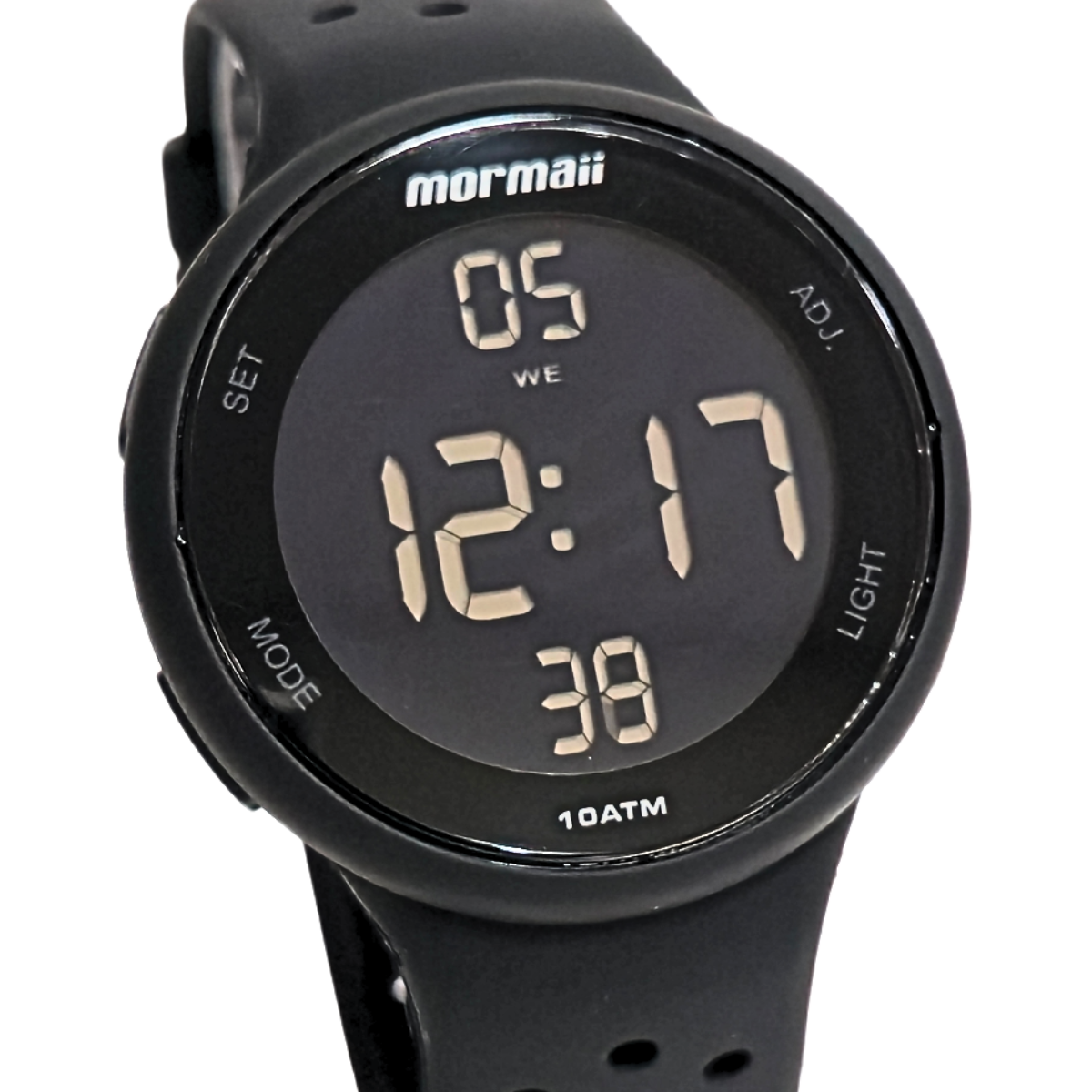 Relógio Mormaii unissex da nossa querida linha digi, modelo na versão redonda com pulseira de silicone e caixa de polímero. todo em preto com display lcd negativo e à prova dágua 10 atm! caixa 43 mm com encaixe perfeito no pulso.