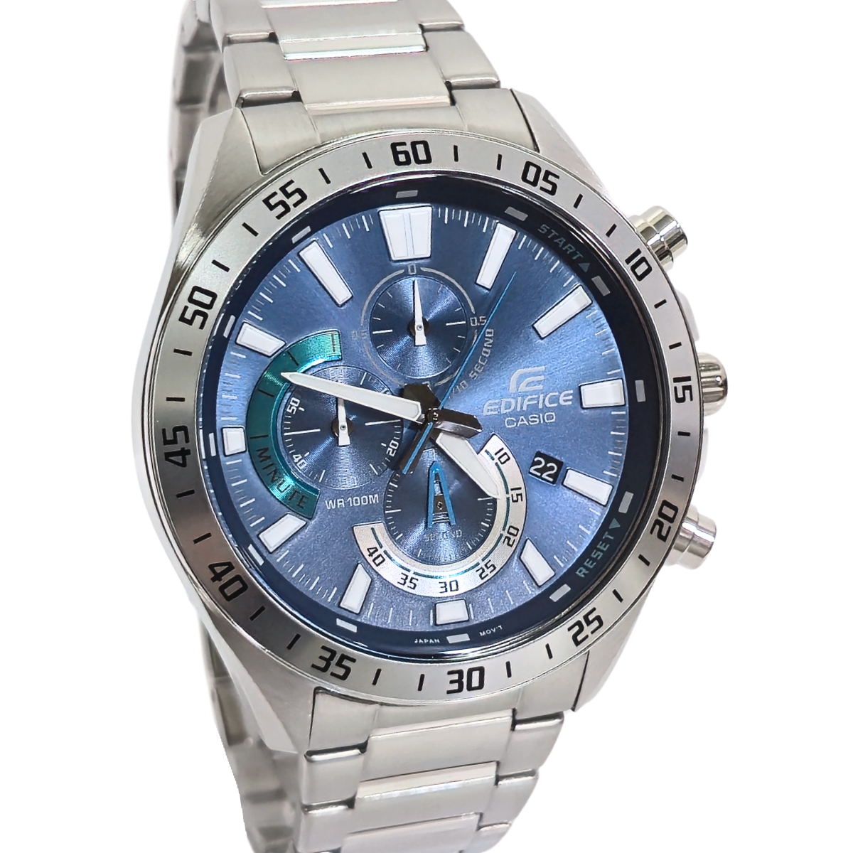 O Relógio Casio Edifice EFV-620D-2AVUDF combina elegância esportiva, robustez e alta precisão, sendo ideal para homens que buscam um visual sofisticado com desempenho confiável. Seu mostrador azul traz personalidade e modernidade ao design em aço inoxidável.