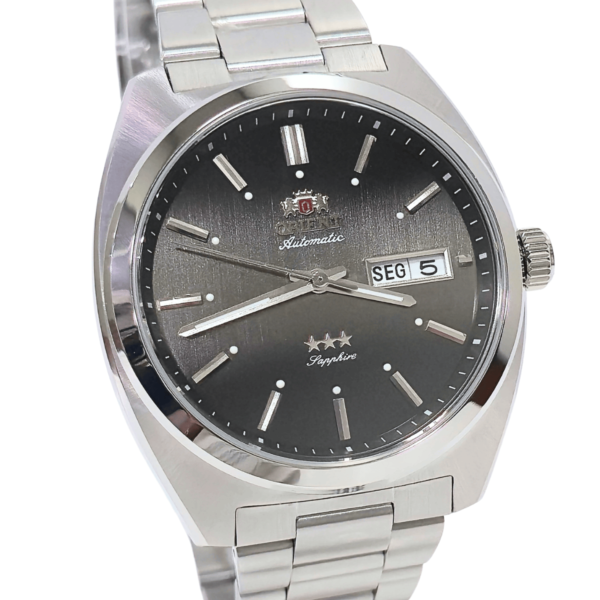 Equipado com movimento automático Orient, o modelo funciona com o movimento do pulso, dispensando bateria, e oferece confiabilidade e precisão mecânica. Seu grande diferencial é o vidro de safira, altamente resistente a riscos, garantindo maior durabilidade e preservação do visual.