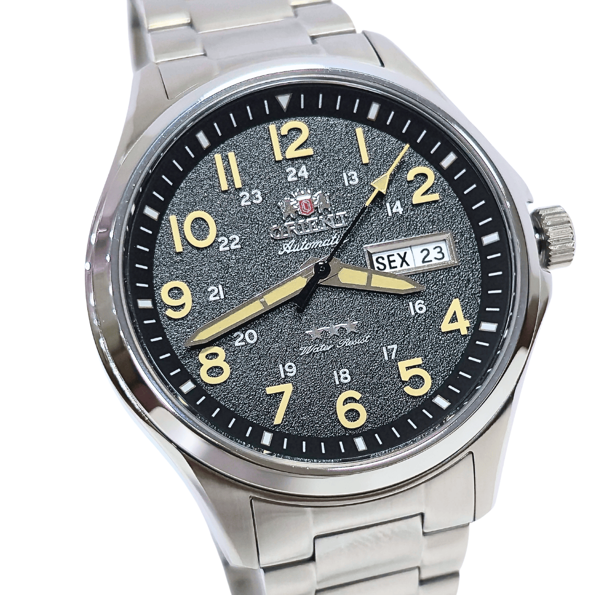 Pertencente à consagrada linha 3 Estrelas, símbolo de qualidade e tradição da Orient, o relógio traz toda a confiabilidade da relojoaria mecânica. Equipado com movimento automático, funciona com o movimento do pulso, dispensando o uso de bateria.