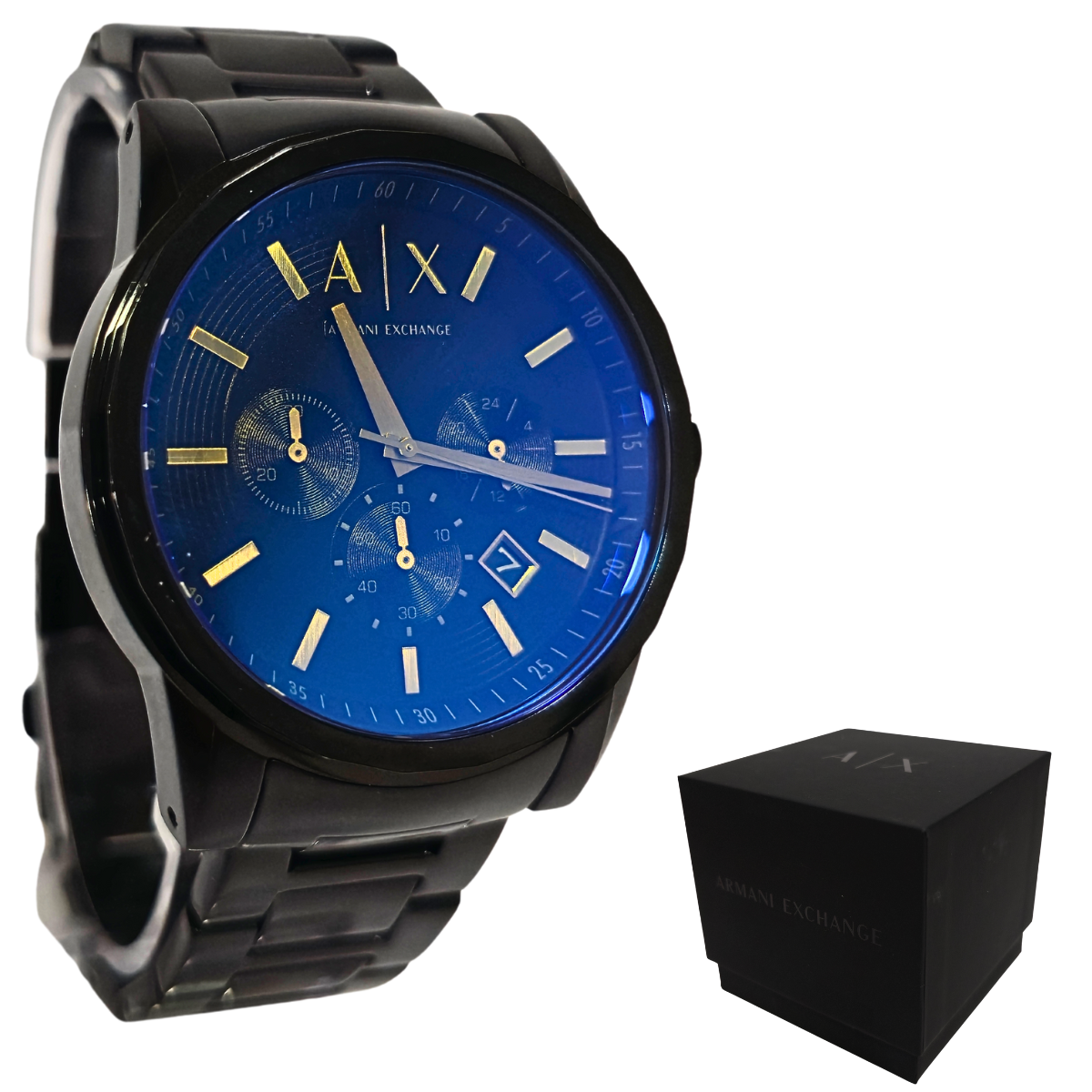 O Armani Exchange AX2513B1 P1PX é um relógio masculino moderno e marcante. Seu design combina pulseira e caixa em aço inox preto com um mostrador exclusivo em degradê azul–amarelo, criando um visual ousado e sofisticado, perfeito para destacar qualquer look.