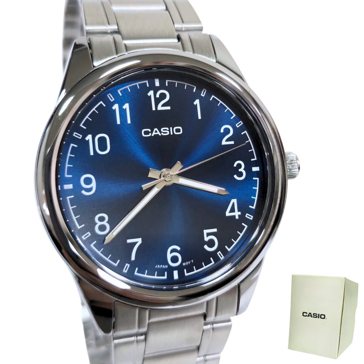 Crie seu próprio estilo com o MTP-V005D-2B4UDF. O design simples e limpo do visor facilita chegar na hora certa. Esse relógio versátil é resistentes à água para uso diário, assim você não precisa se preocupar quando estiver na chuva ou se lavando. Com numeral arábico, elo de metal, visor azul, este modelo projeta o seu estilo pessoal.