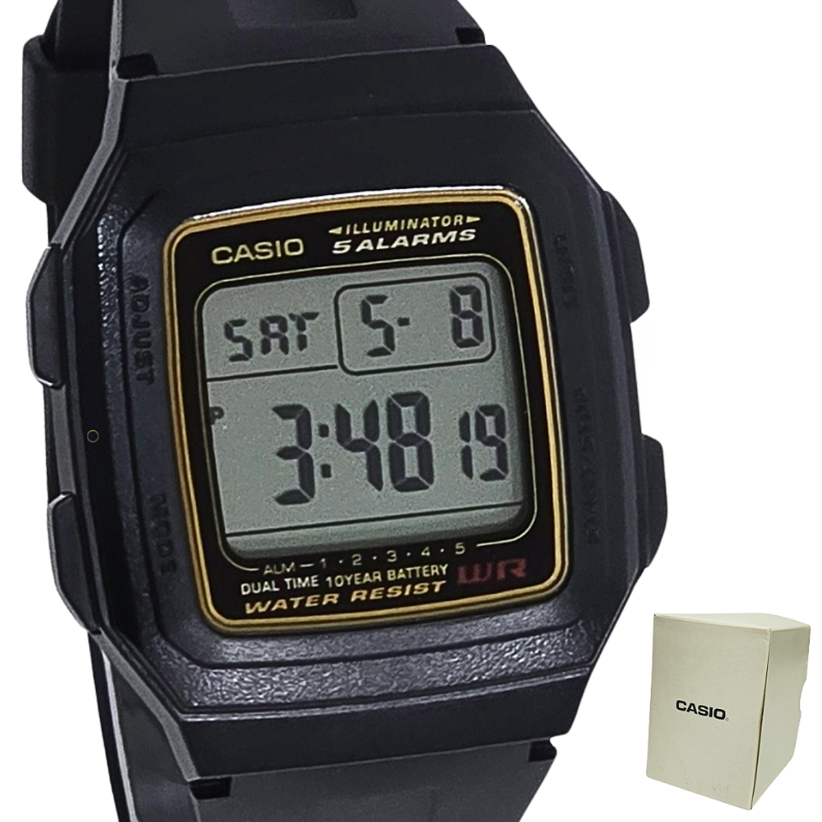 Modelo clássico da Casio, F-201WA-9ADF conta com 10 anos de duração da bateria, 5 alarmes multifuncionais independentes, calendário e cronômetro, além de ser resistente à água para rotinas diárias, iluminação de LED em um design simples retangular que nunca sai da moda.