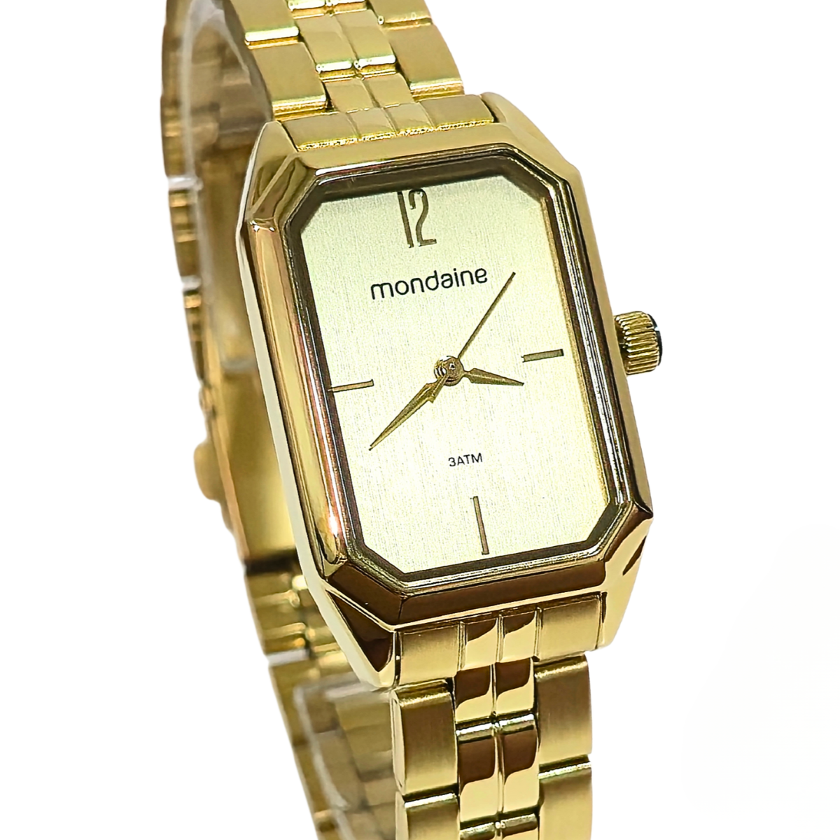 Esse relógio analógico é um verdadeiro clássico perfeito para ocasiões especiais. A caixa com o formato retangular, somado ao mostrador sem números, dão um toque minimalista a peça. Possui acabamento escovado na pulseira e no fundo do mostrador, e detalhe levemente texturizado.