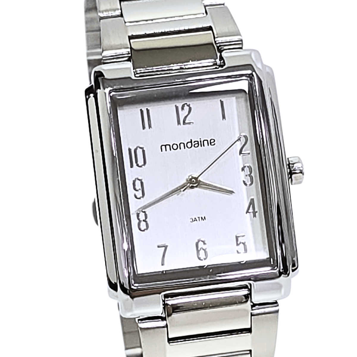 Relógio atemporal que acrescenta um charme único ao visual, com mostrador com efeito de aço escovado e numeração completa. Tem caixa em metal e pulseira em aço com fecho de acionamento lateral. Veste super bem pulsos médios e pequenos.
