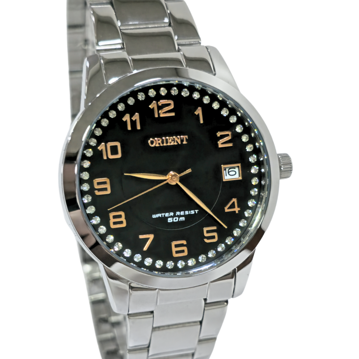 O Relógio Orient Feminino FBSS1192 P2SX une elegância e modernidade em um design sofisticado. Sua caixa e pulseira em aço inoxidável prateado oferecem durabilidade e um acabamento refinado, perfeito para diferentes ocasiões. O mostrador na cor preta com numerais em rosê e aplicação de pedras garante uma leitura clara das horas, enquanto o vidro cristal mineral protege contra riscos leves do dia a dia.