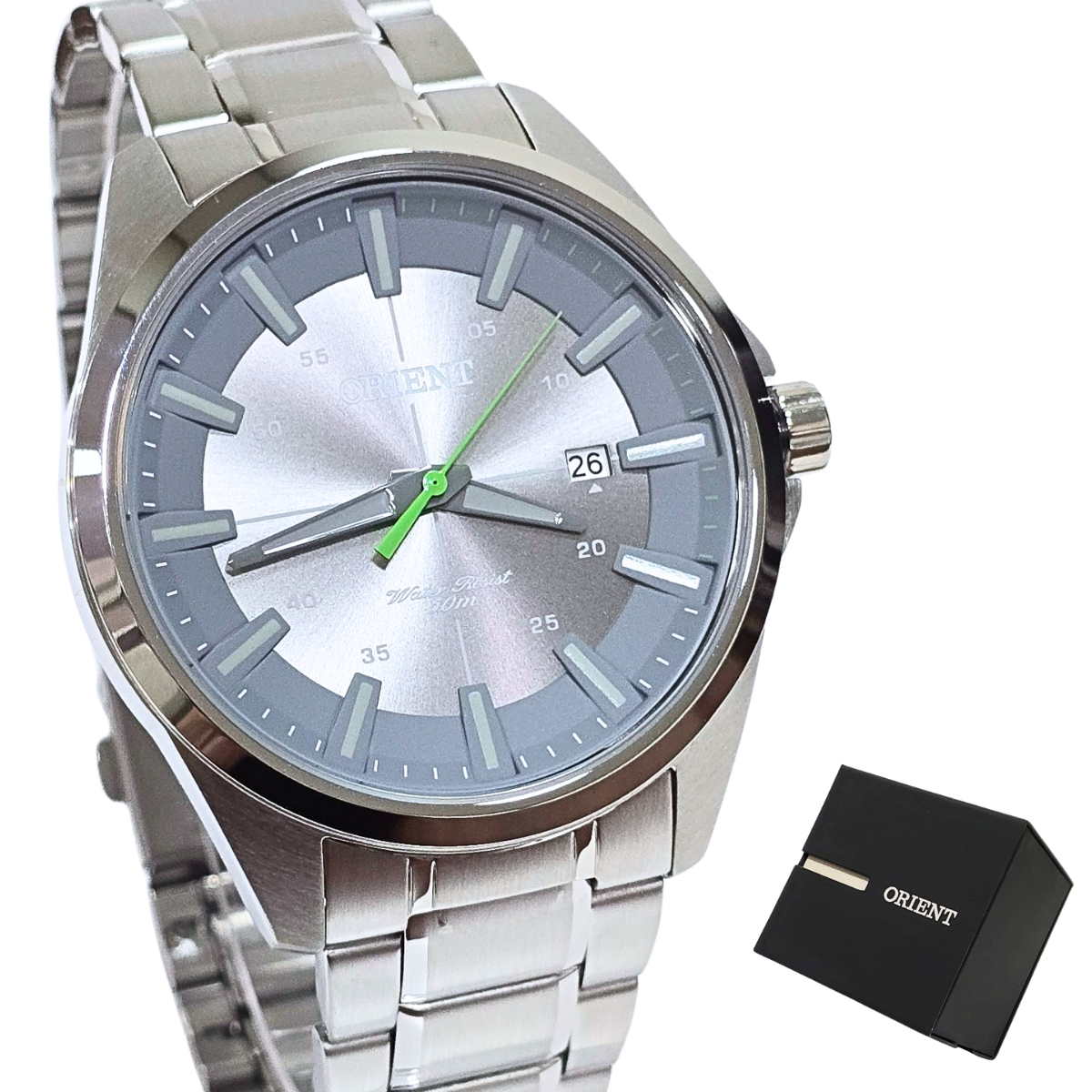 O Relógio Orient Masculino MBSS1294 G1SX une estilo esportivo e sofisticação em um design versátil para o dia a dia. Sua caixa e pulseira em aço inoxidável prateado garantem resistência e durabilidade, enquanto o mostrador prateado traz um visual moderno e marcante. O modelo conta com calendário, marcadores de hora bem definidos, ponteiro dos segundos na cor verde e vidro cristal mineral, proporcionando excelente legibilidade e charme. Além disso, possui resistência à água de até 50 metros, ideal para uso cotidiano com segurança e praticidade.