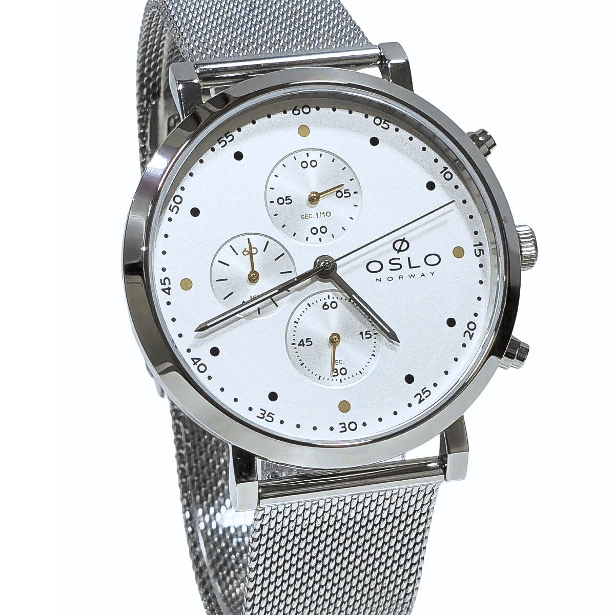 Sofisticação e desempenho reunidos neste modelo com visor prata e vidro de safira, que garante alta resistência a riscos. A caixa em aço inoxidável e a pulseira mesh em aço oferecem um visual moderno e elegante, ideal para diversas ocasiões. Equipado com função cronógrafo, suporta pressão de até 30 metros, unindo estilo e funcionalidade em um só acessório.