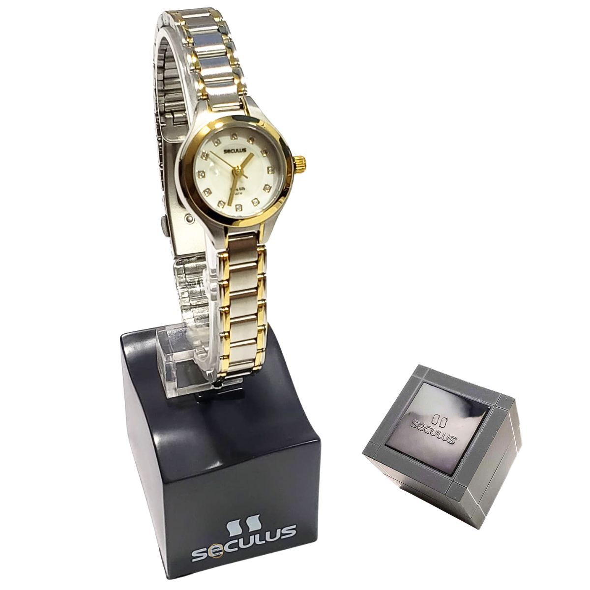 Cor da pulseira: Prateado – detalhes dourados
