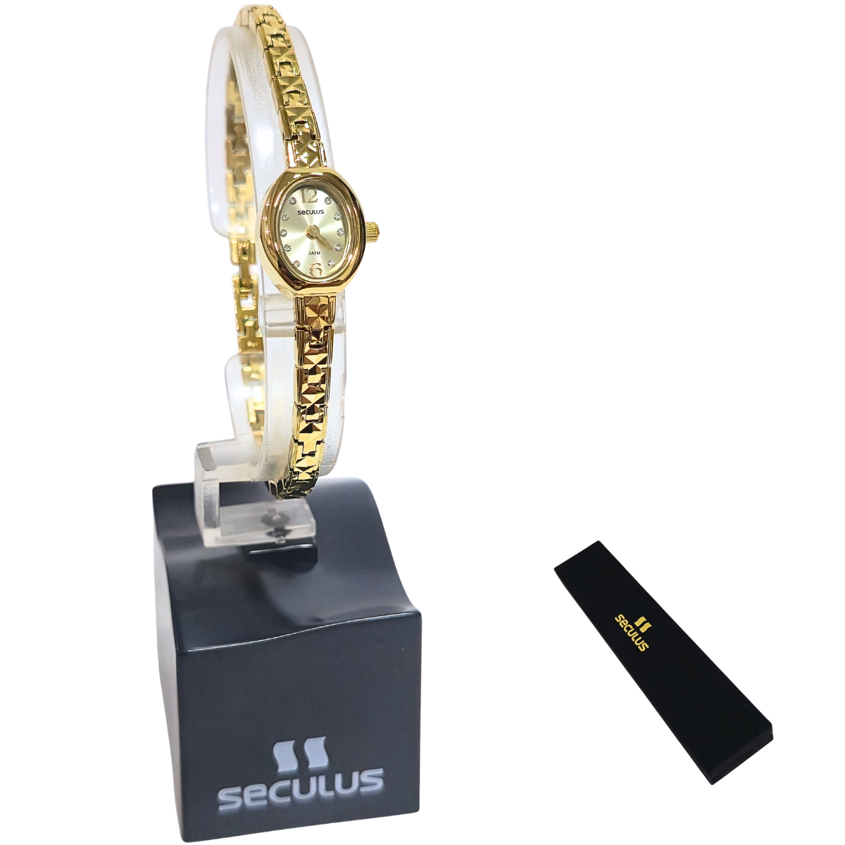 O Relógio Seculus Feminino 20176LPSVDB3 é a combinação ideal entre elegância e delicadeza. Com design clássico e acabamento refinado, este modelo apresenta caixa e pulseira em aço dourado, que proporcionam um visual sofisticado e atemporal.